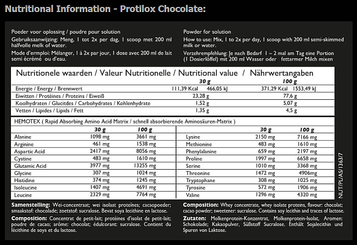 Les points forts de la protéine Protilox sont sans conteste ses qualités gustatives, dépourvue d’aspartame, son goût onctueux très travaillé saura satisfaire les plus gourmets d’entre nous et les plus exigeants.