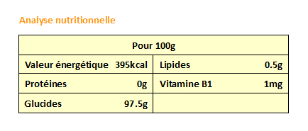 Maltodextrine*, vitamine B1. * Issu de l’agriculture biologique.