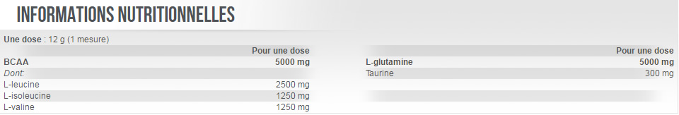 Les fortes doses de BCAA et de glutamine dans BCAA Glutamine Express, associés selon un rapport de 2:1:1, assure une double fonction : production et récupération musculaire.