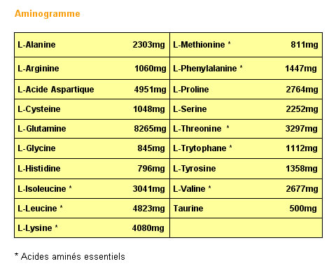* 10000mg de BCAAs et 8000mg de glut@mine, soit les acides aminés les plus importants en musculation