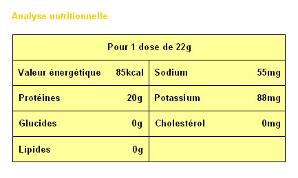 > Dépourvue de glucides, lipides, lactose et cholestérol